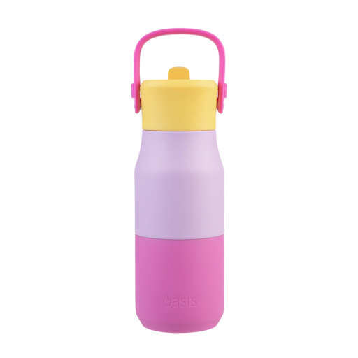 Ignite Curiosity with Oasis JNR Bubblegum Pink 400ml – Double Wall Insulation Keeps Drinks Cold for 12 Hours, Paired with a Fun Flip Sipper Straw f...