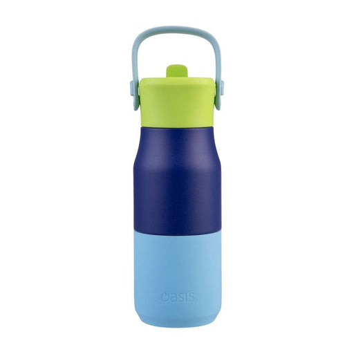 Ignite Curiosity with Oasis JNR Blue 400ml – Double Wall Insulation Keeps Drinks Cold for 12 Hours, Paired with a Fun Flip Sipper Straw for Active ...