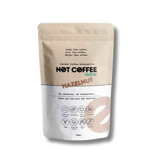 View full detailsNot Coffee Now Hazelnut Instant Coffee Alternative 120g - Caffeine-Free Gut Booster