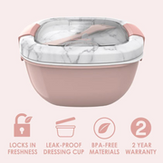 Bentgo® Salad makes eating fresh and healthy salads on-the-go easier than ever. The all-in-one portable design offers the perfect solution for mess-free transport of your lettuce, toppings, and dressing, so you can enjoy a delicious and nutritious salad at work, at the park, on a plane, or just about anywhere! This stackable and packable style nests a spacious salad bowl with a 4-compartment toppings tray on top, along with a leak-proof sauce container to separate your dressings. It’s all secured with an airtight sealing lid and locking clips, so everything stays fresh and mess-free every time you enjoy your salads