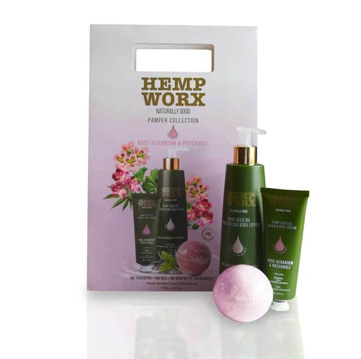 View full detailsHemp Worx Pamper Collection Rose Geranium & Patchouli Gift Set