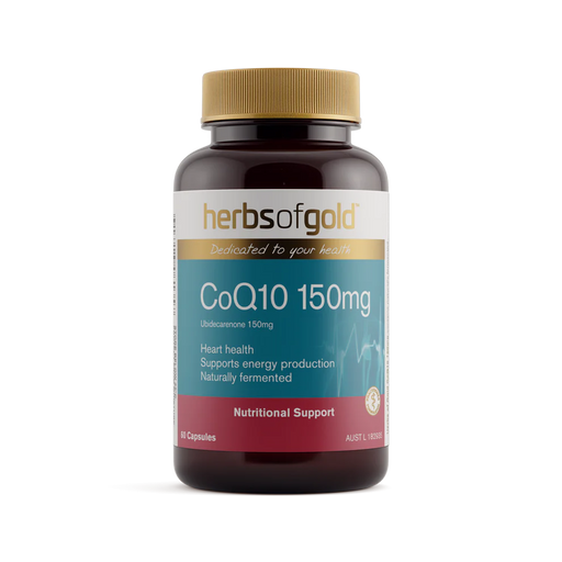 Supports heart health Herbs of Gold CoQ10 150mg contains naturally fermented coenzyme Q10 in a soy-free rice bran oil base. Heart health Ene...