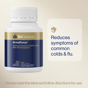 Discover the ultimate ally for your immune health: BioCeuticals ArmaForce Tablets. This premium vegan supplement is expertly formulated to help relieve the severity and duration of common cold symptoms like sore throat, headache, runny nose, cough, fatigue, and restless sleep. Perfect for everyday wellness or seasonal support, ArmaForce empowers your body to fight back against minor upper respiratory tract infections while promoting overall vitality.