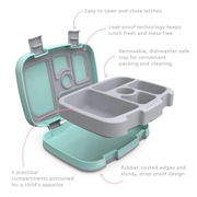 Give your child’s lunchbox a fun and stylish makeover with a bold, new pattern from Bentgo® Kids Prints Lunch Box. With 5 portion-perfect compartments, it organically inspires parents to pack a more wholesome, balanced lunch for growing kids to take and enjoy at school, the park, and more. Pack everything from a half sandwich or wrap, fruits and veggies, plus snacks, dip, or dessert. The best part is that this leak-proof lunch box allows you to pack saucy foods like applesauce, yogurt, hummus, and more without the mess! Built to last, it also features 2 kid-friendly latches to keep meals fresh and rubber-coated edges to protect the lunch box when dropped. The removable compartment tray is microwave safe, top-shelf dishwasher safe, and all components are made with BPA-free, food-safe materials.