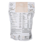 Plant Protein Blend - Organic Yellow Pea Protein, Organic Brown Rice Protein (89%), Natural Flavouring, MCT Oil Powder (Coconut), Organic Maca Power, Organic Chia Seeds, Organic Psyllium Husk, Sweeteners (Steviol Glycoside, Thaumatin), Himalayan Pink Salt.