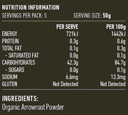 Lotus Organic Arrowroot Powder is a super fine slippery textured starch that is grain free. Packaged in a re-sealable oxygen barrier bag to preserve freshness.
