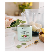 Super Greens (27 %) [Spirulina*, Australian Alfalfa*, Australian Kale*, Chlorella*, Australian Broccoli*, Australian Spinach*, Tasmanian Kelp*], Super Reds (20 %) [Blueberry, Açai*, Raspberry, Strawberry*, Pomegranate, Beetroot*, Goji*, Acerola Extract*, Sea Buckthorn, Queen Garnet Plum, Tomato*], Sprouted & Fermented Golden Pea Protein*, Synbiotic Blend [Prebiotics: Inulin*, Apple Pectin, Green Banana Starch*, Probiotic: BC30® (Bacillus coagulans GBI-30, 6068)], Aquamin Marine Minerals (Arctic Sea Algae* & Salt), Sunflower Extract, Pineapple, Lemon, Flaxseed*, Apple*, Maca Blend (Yellow*, Red*, Black*), Natural Plant Based Flavours, Restorative & Cleansing Botanicals (St. Mary’s Thistle*, Horsetail*, Gotu Kola*, Licorice Root*, Marshmallow Root*, Lemon Balm*, Dandelion Leaf*, Ginger Root*, Ashwagandha*, Aloe Vera Leaf*, Panax Ginseng*), Wholefood Vitamin & Mineral Extracts [Broccoli*, Spinach*, Kale*, Pumpkin*, Sweet Potato*, Sunflower Seeds*, Cranberry*, Chlorella*, Adaptogenic Mushrooms (Maitake Mushroom*, Shiitake Mushroom*)], Camu Camu*, Digestive Enzymes (Protease, Amylase, Lipase, Cellulase, Lactase), Mesquite*, Natural Sweetener (Thaumatin).