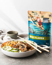 Nori Flakes provide a low-calorie delicious source of vitamins and minerals including iodine, Vitamin E, B3, B12, iron and potassium. Iodine is essential for the production of normal thyroid hormones and energy metabolism and iron is necessary for normal immune system function and oxygen transport throughout the body. Vitamin B12 supports DNA synthesis and the normal function of brain, nerve and blood cells.