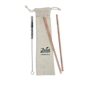 Zurit Premium Copper Straw Set of 2 with Cleaning Brush Comes In Cotton Pouch